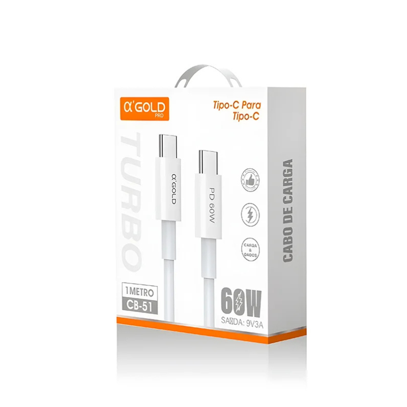 Cabo de dados e carregamento tipo c tipo c com chip inteligente e fio de alta qualidade. É 3 vezes mais rápido podendo carregar até 60% em 30 minutos possui 1 metro de comprimento. A alphagold foi desenvolvida para trazer qualidade, inovação e durabilidade em seus produtos tecnológicos. Produto original homologado pela anatel. item incluso: 1 cabo tipo c tipo c peso: 28 gramas. Dimensões da embalagem: (l x a x p) 7 / 8 / 2 cm todos os produtos são bem embalados e protegidos. Possuem garantia de reembolso de sete (7) dias. Importados navi atacado – a sua loja de eletrônicos completa e com o melhor preço. Atendimento de segunda a sexta das 7h às 17h.